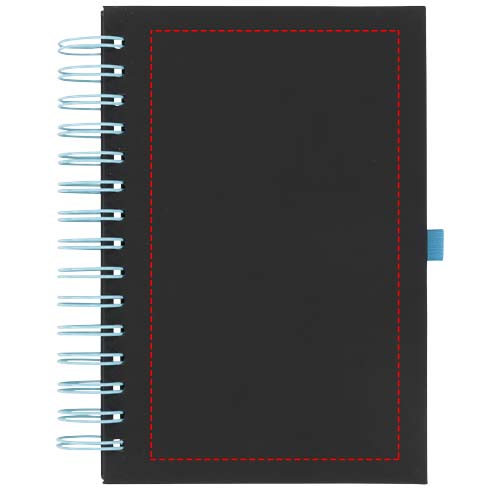 A new addition to our popular Notebook range. This versatile new notebook has a smooth black PU cover, with brightly coloured chunky wire and matching pen loop. Includes 160 sheets (70g/m2) cream lined paper.